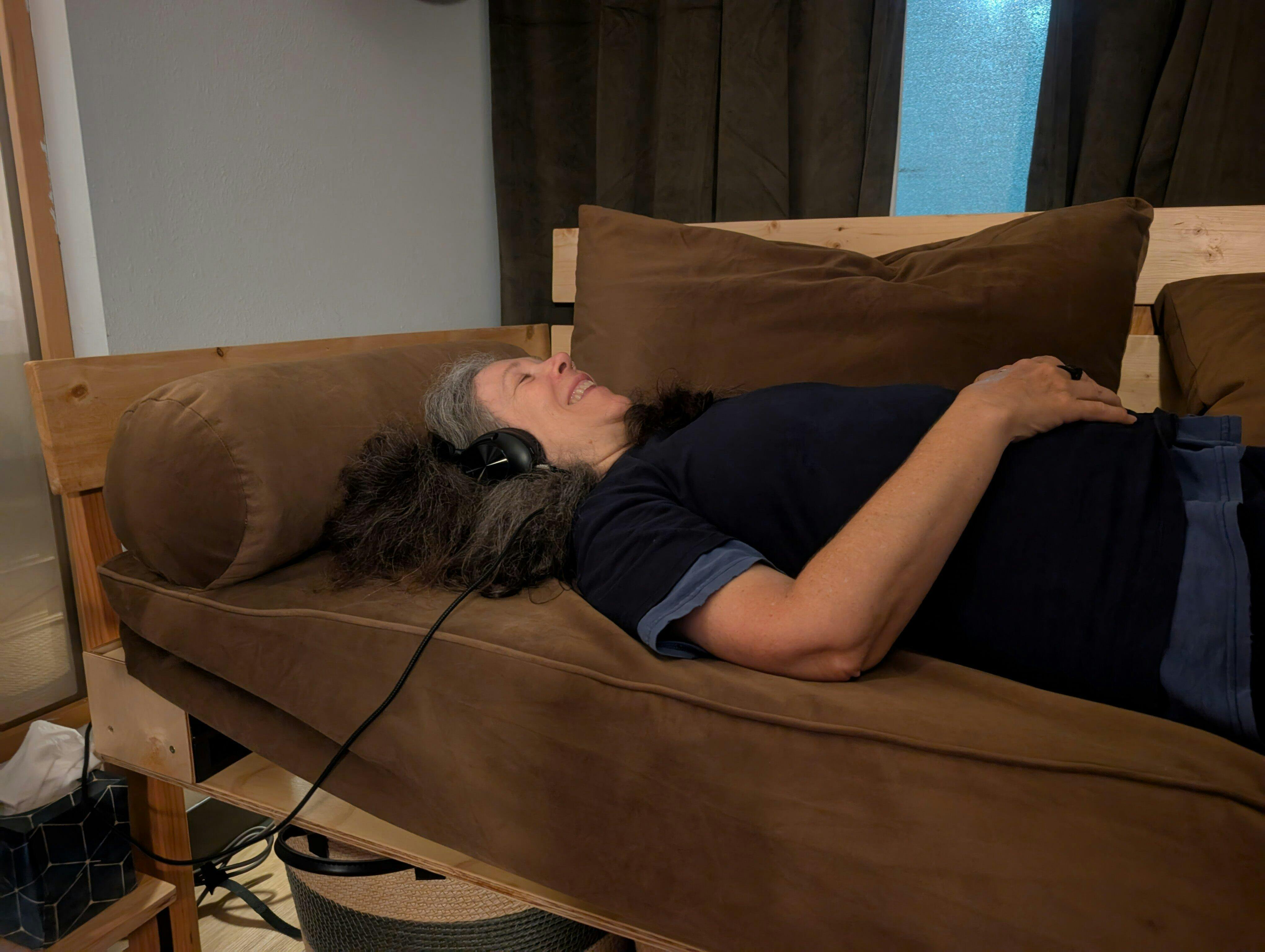 Along with clients in the home office, all our friends and family who visit are entreated to put on an eye pillow and sink into the bass bed. "That was transformative," one tranced out looking friend reported. "Wow," is the most common comment we hear accompanying a dazzled look in the eyes. One comment that stands out was, "I love the moment when I forgot I was on a bed," our rejuvenated looking friend made a cradle with her hands and went on to say, "and the music just held me, floating." We're thrilled to have connected with the marvelous minds behind Crescendo and grateful for the transportive and soul stirring innovation they've contributed to our lives. "Eleven stars," exclaimed another friend returning from a journey on the bass bed. Agreed. Thank you, Crescendo.